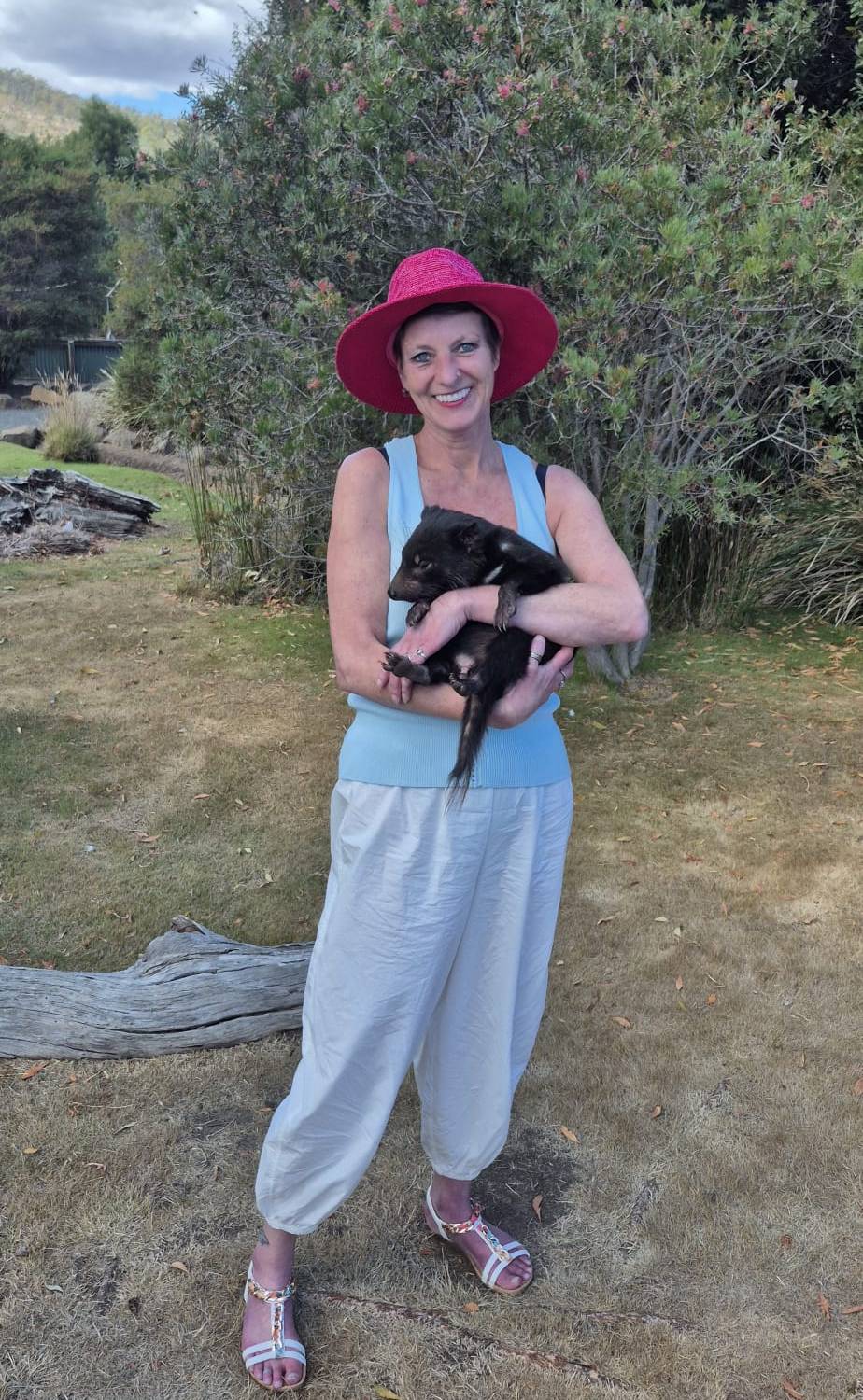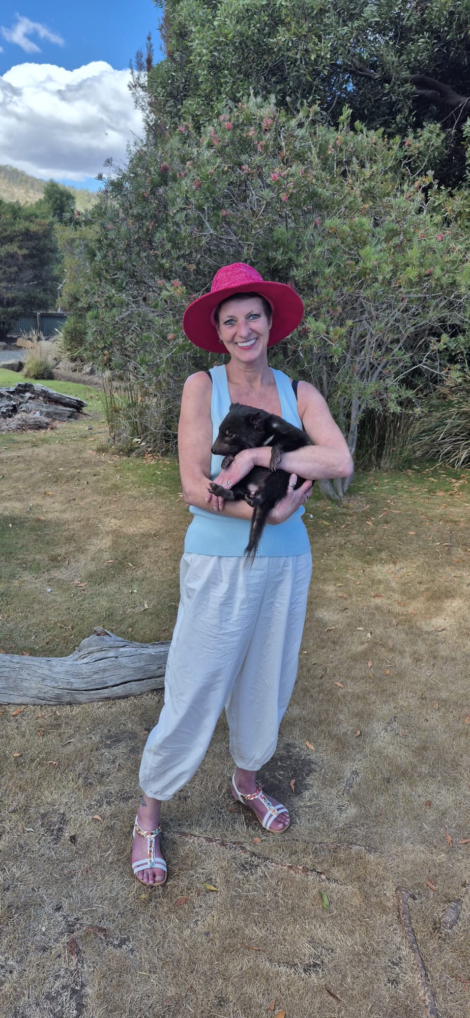 In de eerste week zaten wij heerlijk op het dakterras en er kwam een adembenemend moment. Voor ons in het water kwamen dolfijnen om te spelen met elkaar. En daar stonden wij met ons vieren te genieten het tafereel, wow! Er volgde een dagje dierentuin, daar zie je life de Tasmaanse duivel. En die is mooi van lelijkheid en om die dan vast te houden waar je, je hand stil moet houden, anders ben je die kwijt. Prachtig een zeer bijzonder beest en een speciaal momentje. En je mag kangoeroes voeden, die uit je hand eten.